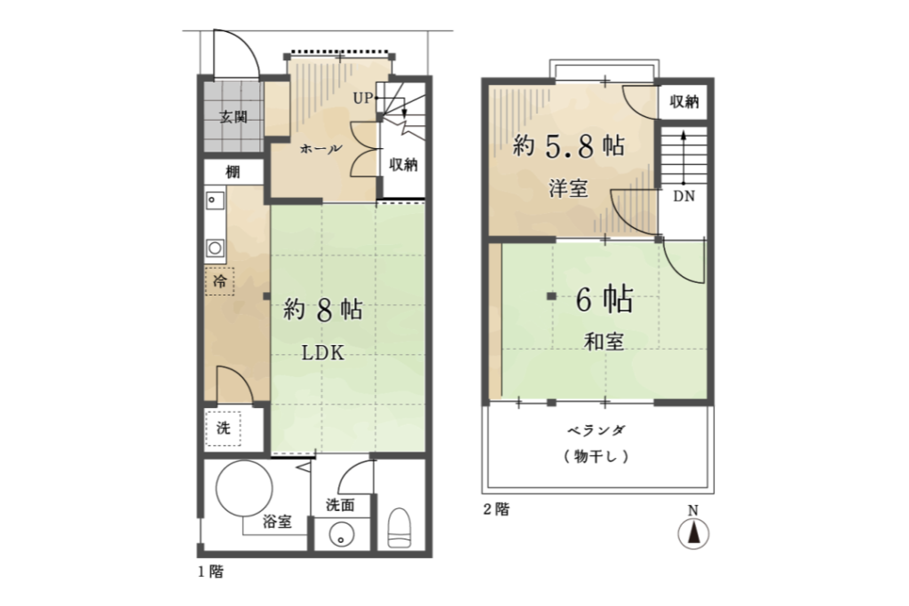 | 使用部分面積 | 1階:38.66m² 2階:25.72m² 延べ:64.38m²(約19.47坪) |