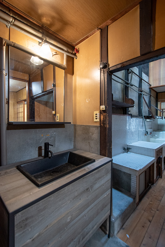 虫籠窓や木製建具のはまる風情ある外観。台所には吹き抜けの火袋が状態良く残る趣ある町家です。